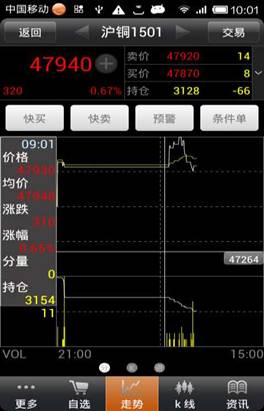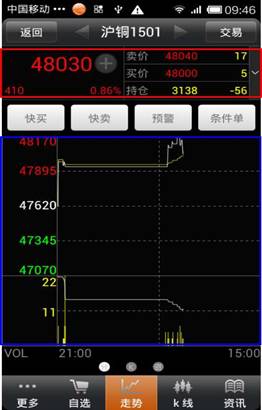 ◇ 快捷操作:在走勢界面可以實現(xiàn)快買、快賣、設置預警/條件單的快捷操作。