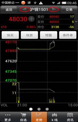 ◇ 商品搜索:點擊“更多”--“商品搜索”,可以快速切換到需要查看的品種信息。