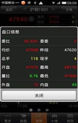 漲跌、漲幅、分量、持倉數(shù)據(jù)。點擊盤口數(shù)據(jù)區(qū)域,十字線消失。